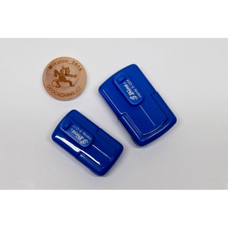 Kvalitní samonamáčecí kapesní razítko s bezpečným vysouvacím mechanismem. Již nikdy špinavé prsty. Razítko je dodáváno v pevném plastovém pytlíčku a tělo razítka má připravenou dírku pro přidělání provázku na krk. Maximální velikost otisku je 24 x 24 milimetrů a nebo kulaté o průměru 24 milimetrů.